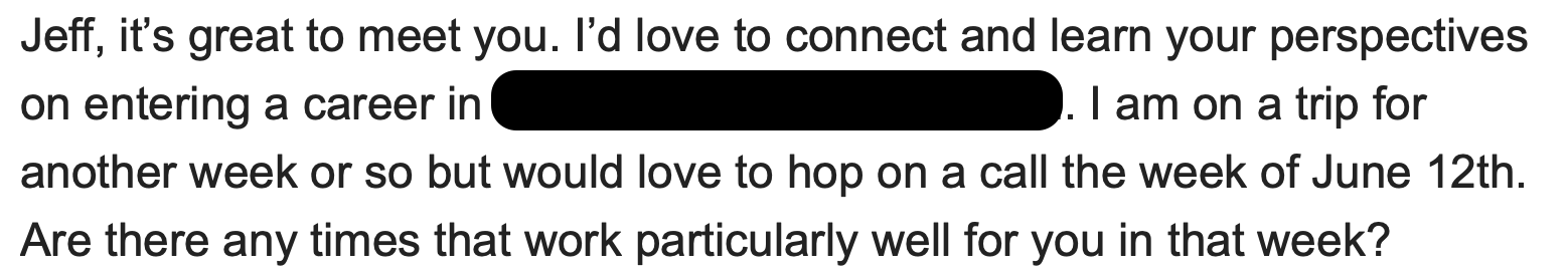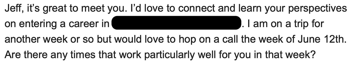 This week, I received the following email from a recent college graduate who was introduced to me by a mutual friend:
